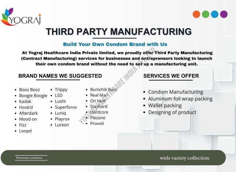 At Yograj Healthcare India Pvt. Ltd., we proudly offer Third Party Manufacturing (Contract Manufacturing) services for businesses and entrepreneurs looking to launch their own condom brand without the need to set up a manufacturing unit.